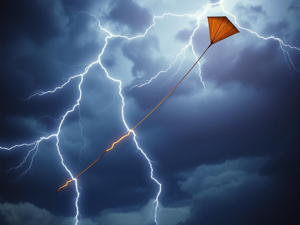 Im 18. Jahrhundert wurde der amerikanische Politiker und Wissenschaftler Benjamin Franklin für seine Experimente mit Elektrizität bekannt. Vielleicht hast du schon einmal das Bild gesehen, wie Franklin während eines Gewitters einen Drachen steigen ließ, um Blitze einzufangen. Das war kein Mythos! Franklin wollte herausfinden, ob Blitze und die Funken, die er in seinen Experimenten erzeugte, denselben Ursprung hatten.